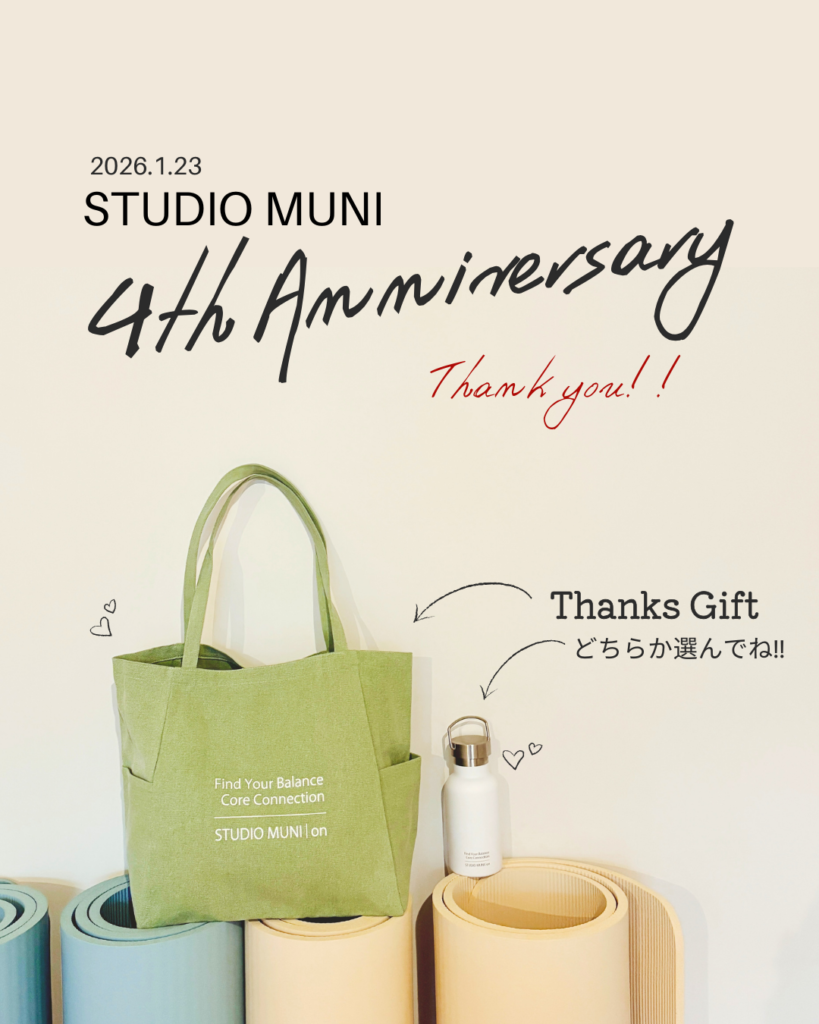 STUDIO MUNIは1月23日にスタジオオープン4周年を迎えます。今年もまた無事にこの日を迎えられるのは、いつもご利用くださる皆様のおかげです。