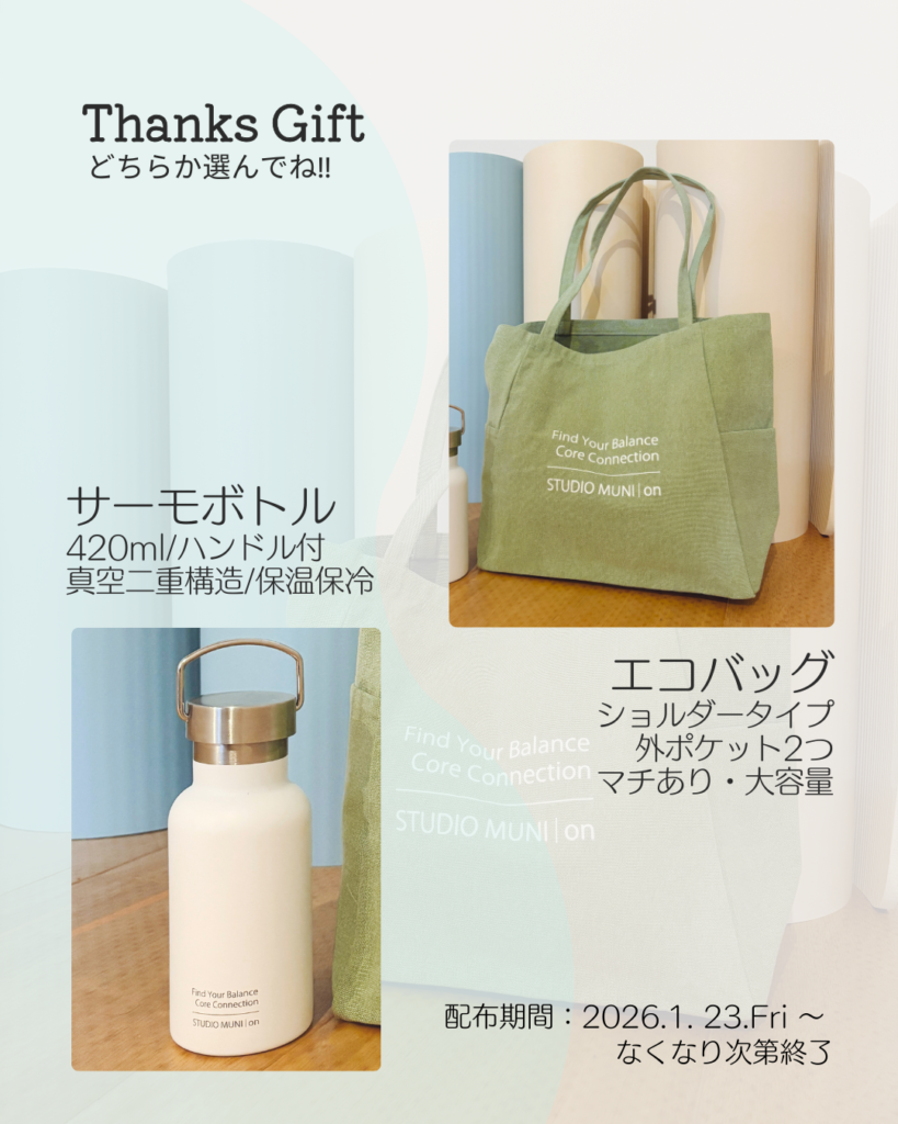 今回はMUNIオリジナルエコバッグとサーモボトルのどちらかお好きな方を差し上げます。